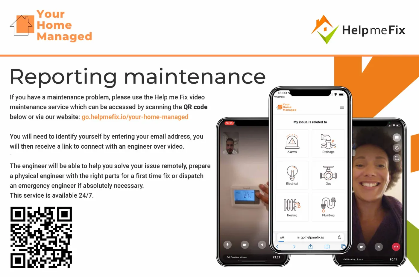Your Home Managed has partnered with Help Me Fix to provide maintenance and out-of-hours emergency service, connecting tenants directly with a tradesperson over video.